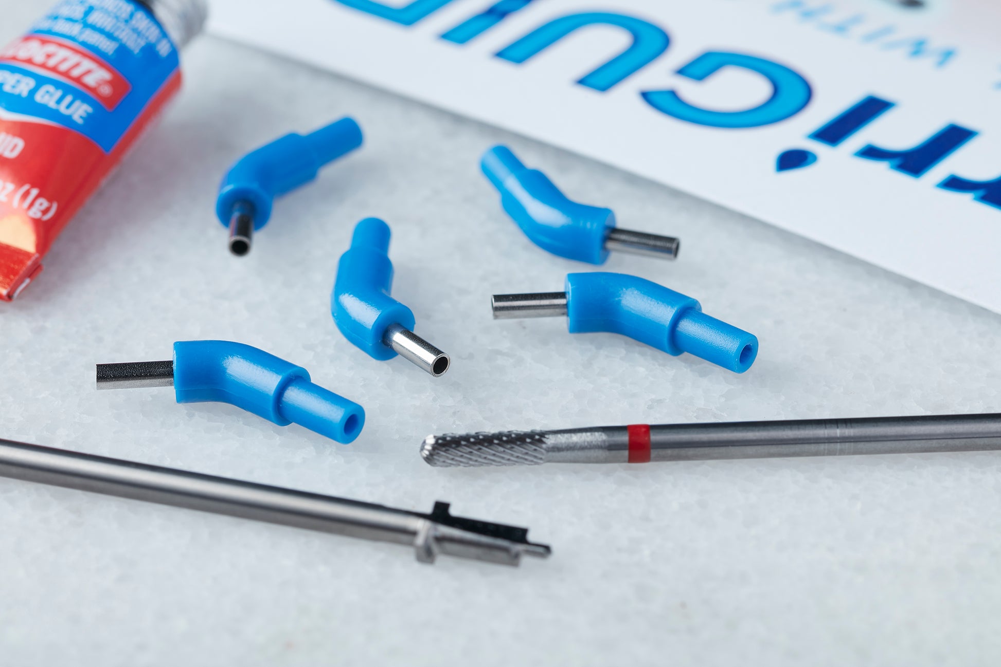 Place a drop of cyanoacrylate glue onto the joint between the IrriGuide adapter and the surgical guide. Allow to set completely. (See Tech Data Sheet for details).